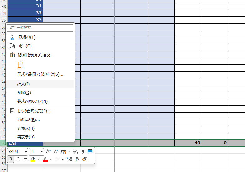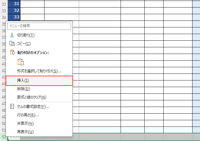 まずは、社員情報の最終行の1つ下の行を右クリックします。