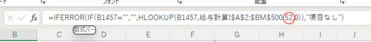 次に、貼り付けた給与明細書(賞与明細書)のHLOOKUP関数の数字を修正します。