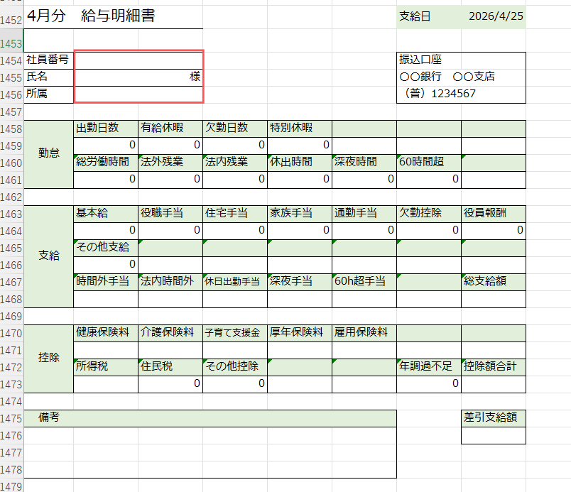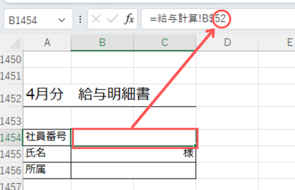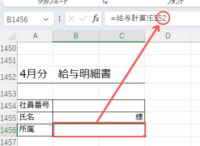 給与明細書・賞与明細書は各項目の修正以外にも社員情報の数式も修正する必要があります。修正箇所は以下の通りです。