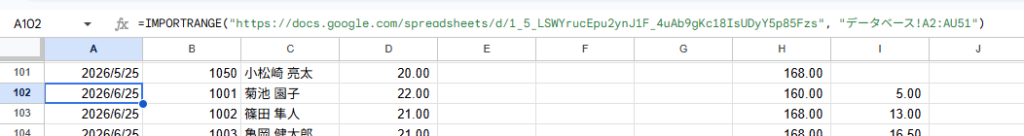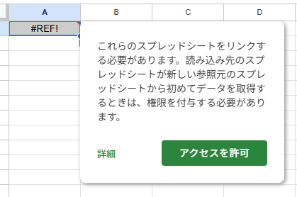 なお、IMPORTRANGE関数は最初に関数を入れたときはエラーとなり、アクセスを許可をする必要がありますので、注意しましょう。