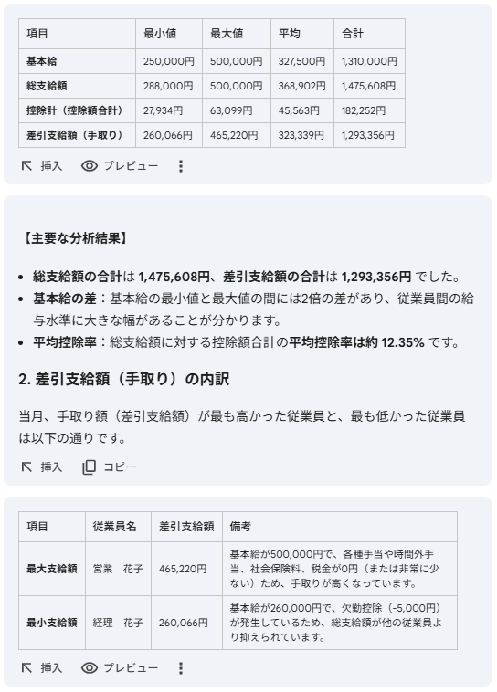 このように簡単な指示(プロンプト)でもAIが分析をしてくれるため、さまざまな用途に活用できます。